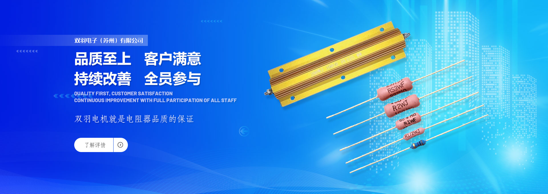 專業致力于電阻之制造與發展,秉持著“品質至上、客戶滿意、持續改善、全員參與”之經營理念,著重于電阻器產業之創新開發與品質提升。